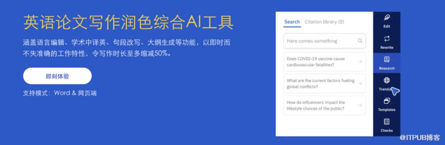 这个网站在国内很有名,主要是做论文润色用的。提供了修改建议、查重、改语气、矫正规范、学术翻译、提供大量大纲模版等功能,基础免费版足够我们使用了。同时,他还会从期刊的角度给你的论文进行评估打分,大家可以去尝试下。