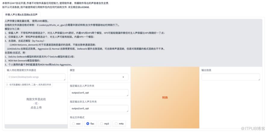 到这里去除背景音和杂音部分就完成了,可以关闭刚才新打开的【UVR5-WebUI】网页,然后取消之前选中的【是否开启UVR5-WebUI】,否则会占用内存。