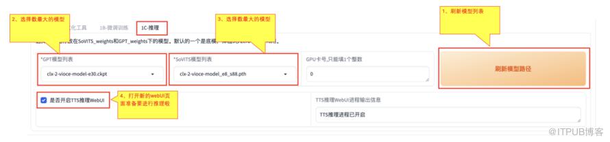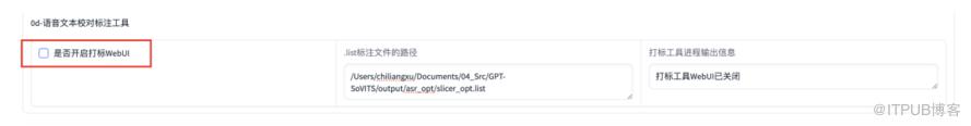 4)、选中【是否开启TTS推理WebUI】,开启新的webUI页面,准备进行推理