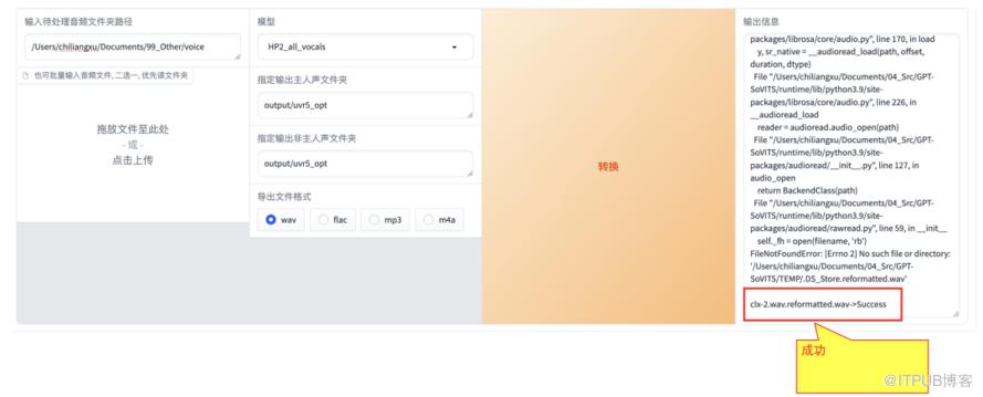 1)输入自己录制转换成wav格式后的音频的路径