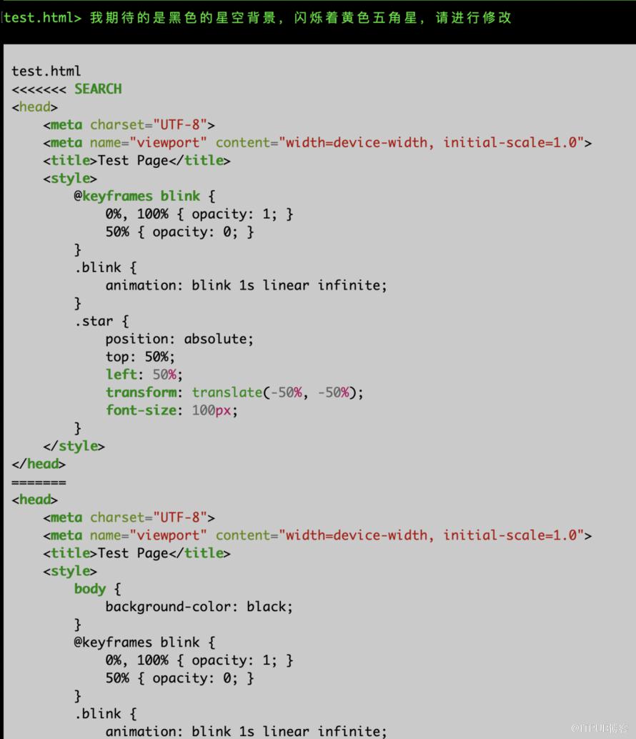 然后我继续让它对五角星进行修改,我期待的是黑色星空背景,黄色五角星。它也很好完成了任务。
