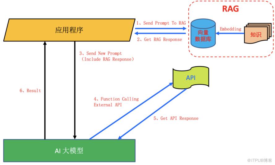 3、将RAG返回的信息或数据整合进一个新的Prompt中。这个新Prompt包含了原始用户请求的上下文信息,以及通过RAG检索获得的相关知识。然后应用将这个包含了检索信息的新Prompt发送给大模型。