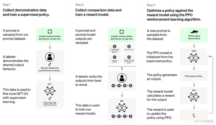 1、用步骤一先训练一个有回答能力的基础模型。然后再基于步骤一的输出结果,训练一个奖励模型,也就是步骤二做的事。