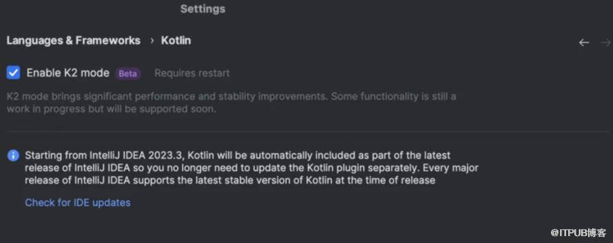 变化二、K2 模式下针对 Kotlin 改进的稳定性和性能(Beta)