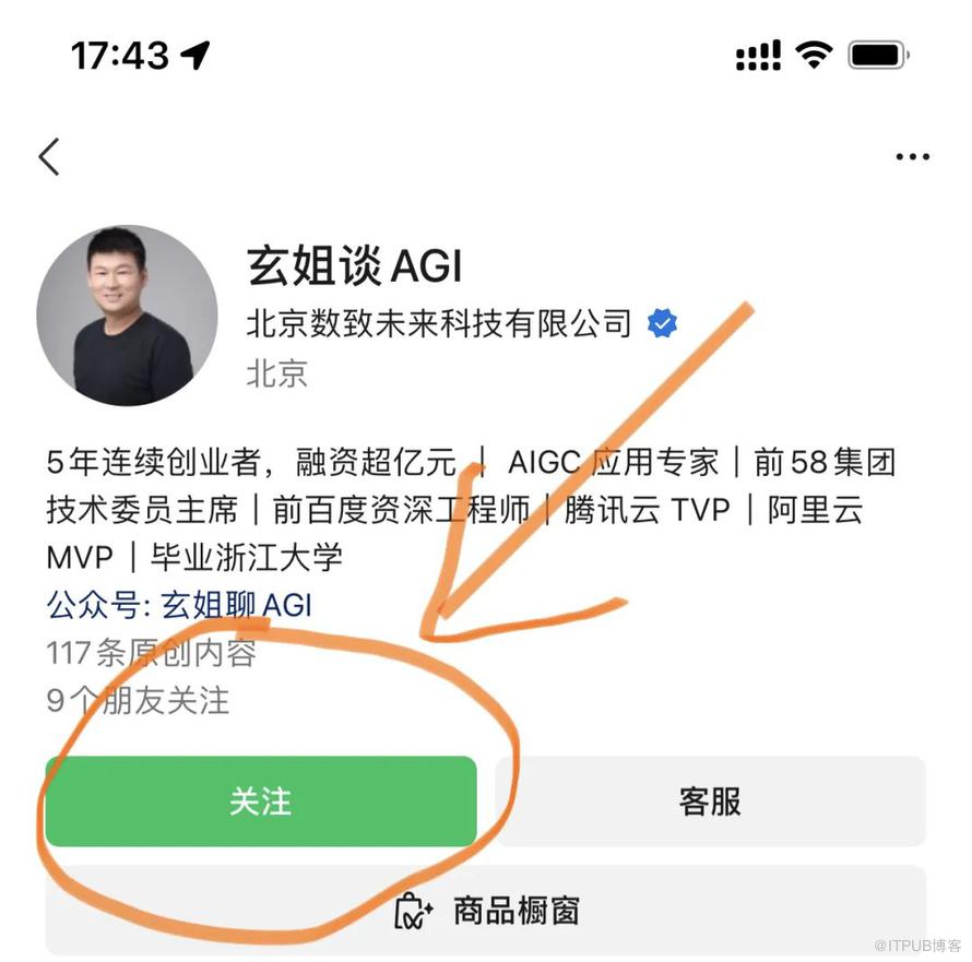 第二步:扫码后,点击以下关注按钮,就可关注我。