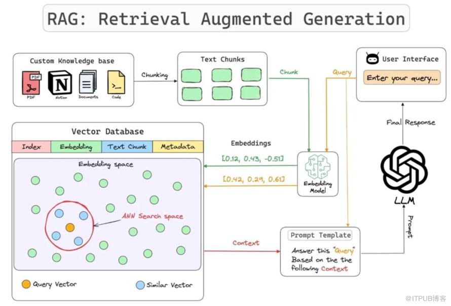 RAG 体系将大语言模型与外部知识源融为一体,其操作步骤如下: