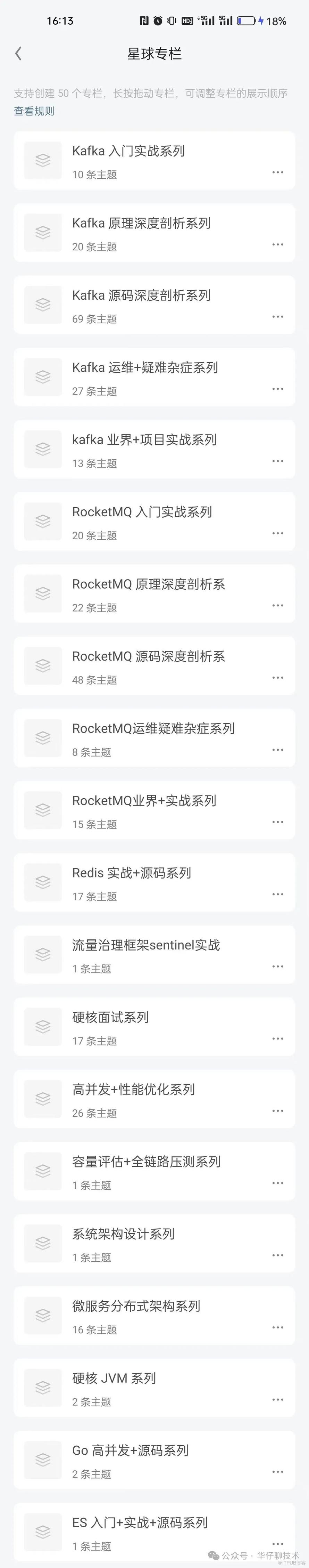 除了这两大专栏外,华仔的知识星球【华仔和他的朋友们】还开设 15 个技术专栏了,分别是: