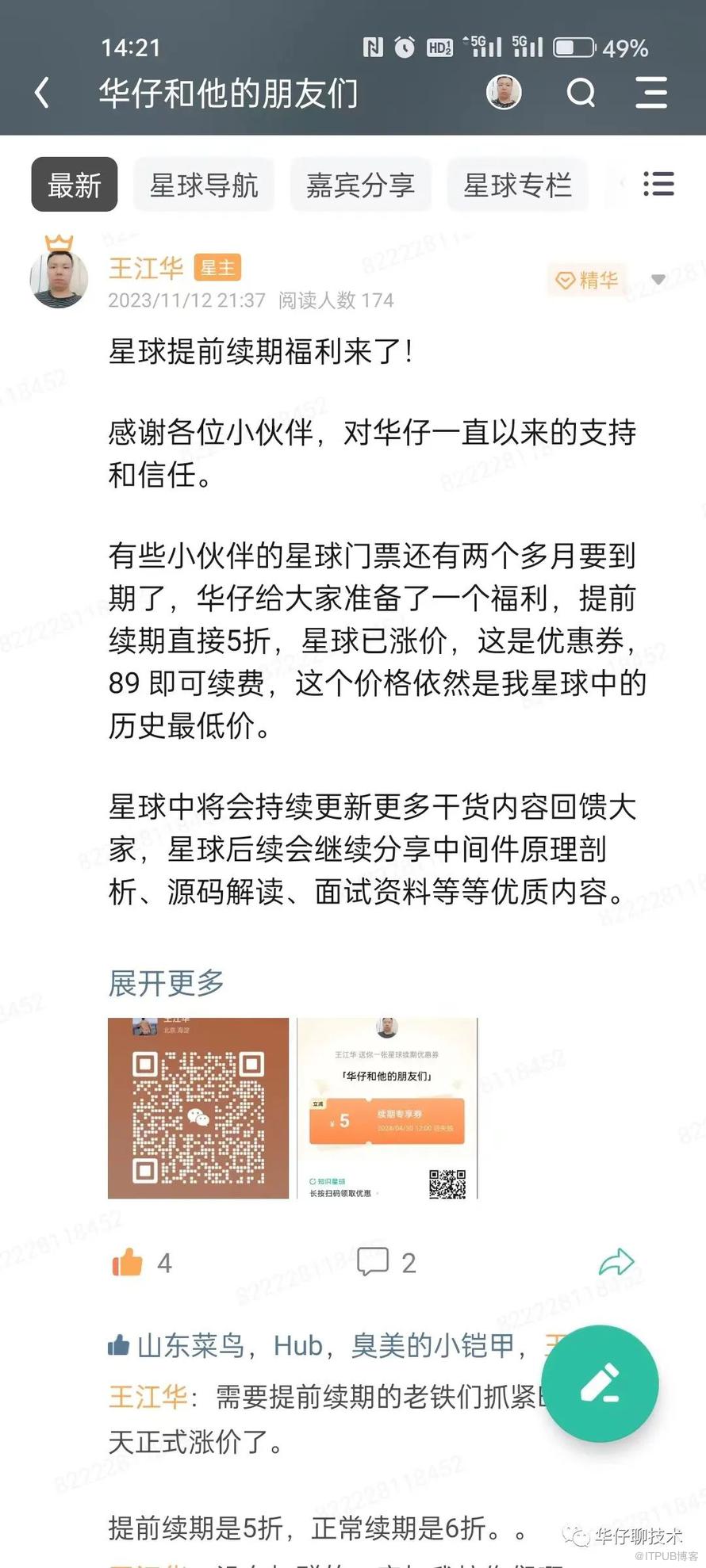 今天申请了10 张 40 元优惠券,券后仅需 149 元。加入后送两个陪伴群,一个是星球陪伴群,另外一个是副业陪伴群。