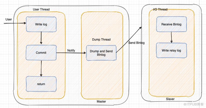 这种模式下,主节点不会主动推送数据到从节点,主库在执行完客户端提交的事务后会立即将结果返给给客户端,并不关心从库是否已经接收并处理。