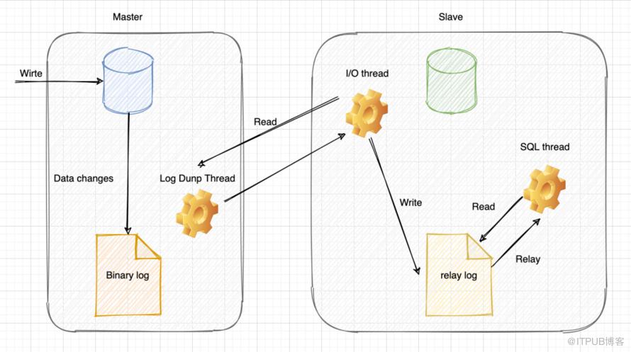 start slave命令之后,从节点会创建一个 IO 线程用来连接主节点,请求主库中更新 binlog。IO 线程接收主节点 binlog dump 进程发来的更新之后,保存到 relay-log 中。从节点 SQL 线程负责读取 realy-log 中的内容,解析成具体的操作执行,最终保证主从数据的一致性。