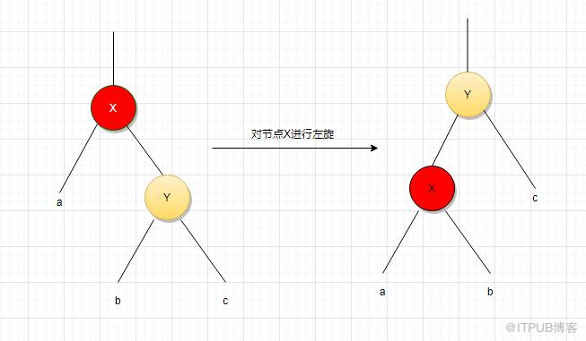 对 x 进行左旋,意味着,将“x 的右孩子”设为“x 的父亲节点”;即,将 x 变成了一个左节点(x成了为 z 的左孩子)!。因此,左旋中的“左”,意味着“被旋转的节点将变成一个左节点”。