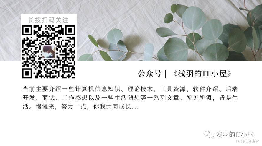 如果你觉得浅羽的文章对你有帮助的话,请在微信搜索并关注「 浅羽的IT小屋 」微信公众号,我会在这里分享一下计算机信息知识、理论技术、工具资源、软件介绍、后端开发、面试、工作感想以及一些生活随想等一系列文章。所见所领,皆是生活。慢慢来,努力一点,你我共同成长...