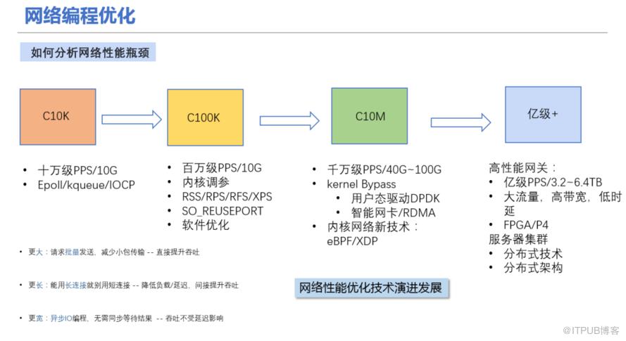 从我们用户的使用就可以感受到网速一直在提升,而网络技术的发展也从1GE/10GE/25GE/40GE/100GE/200GE/400GE的演变,从中可以得出单机的网络IO能力必须跟上时代的发展。