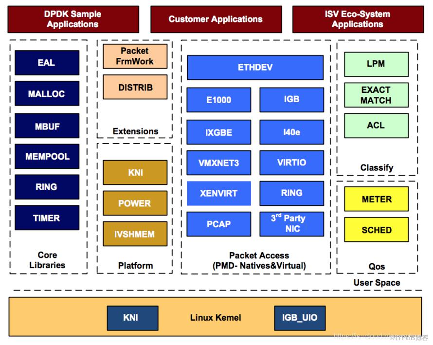 DPDK 包括用于 1 GbE、10 GbE 和 40 GbE 的轮询模式驱动程序 (PMD),以及半虚拟化的 virtio 以太网控制器,这些控制器旨在在没有异步、基于中断的信号机制的情况下工作。