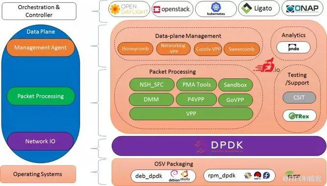 促进基于软件的数据包处理的创新,以创建适用于许多架构(x86、ARM、 PowerPC)和部署环境(裸机、VM、容器)。
