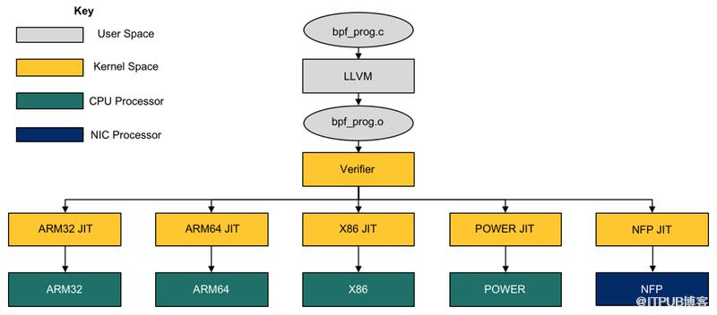 图 2. 主机上 eBPF 程序的编译流程。部分支持的 CPU 架构未显示。
