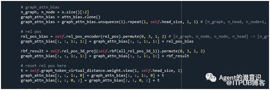 边就是两个节点之间的连线,他在图中有具体的物理含义的。但是,他有一个缺点,就是只代表了两个节点之间有连线的物理意义,而不是整个图的表征信息;而transformer是要打破边界的,他要从更大范围去考虑节点与节点之间的关系。 白话一点解释,两个人住在同一个小区,他们之间的物理意义是连在一条边上的,但他们老死不相往来,两个人的互相影响基本是0;而反而A跟他在海外的共同论文作者W经常Zoom沟通,他们之间的关系更紧密;再进一步,A不认识W的导师,他们之间没有边,但W的脑回路都是他导师刷的,那么其实A更被W的导师影响。 你有了这个认识后,就是怎么把这样的信号学到的问题了。文章给了一个很好的建模思路,他构建了一个边的bias 权重,这个权重是在模型里学的。 整个模型结构其实就是一个基本的tranformer。他只有一个优化点就是加了一个层归一化。