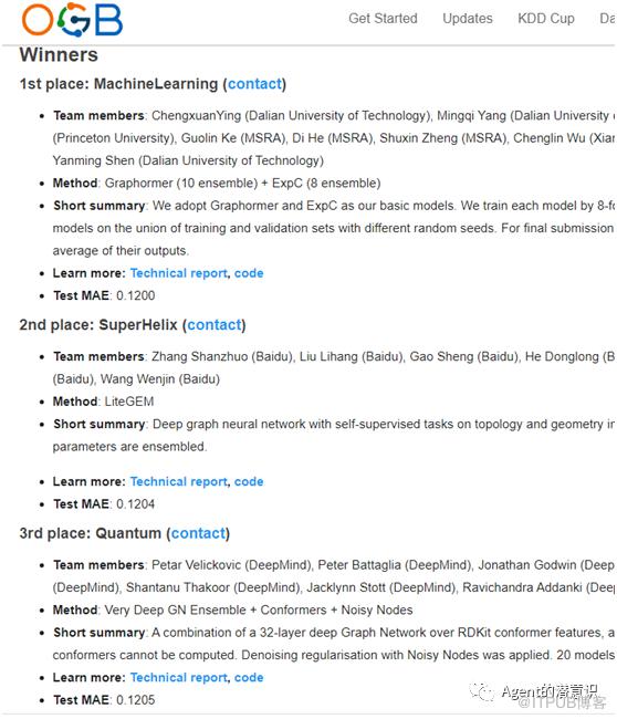 1、今年KDD图数据挖掘有三个赛道,Graphormer 夺冠的其中之一,另两个赛道还是GNN的天下。不过话说回来,也许是Graphormer 派的人没有时间去finetune 调参去另两个赛道比赛。 2、夺冠的Graphormer是18个model ensemble的结果。比分也是微弱优势领先。MAE领先0.004.