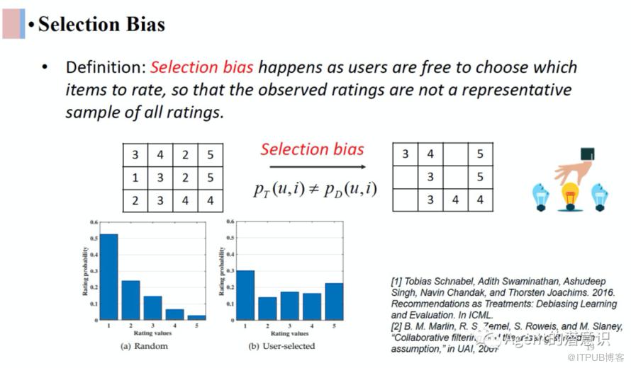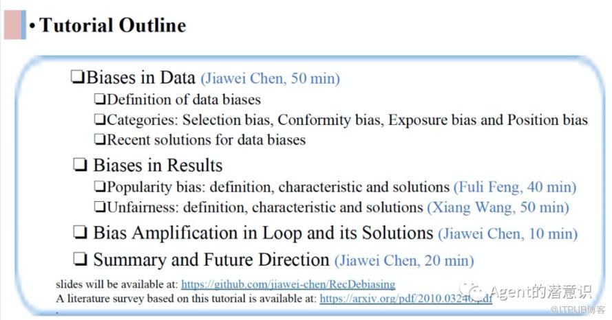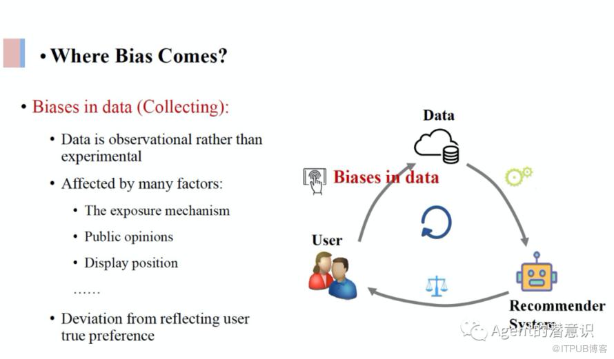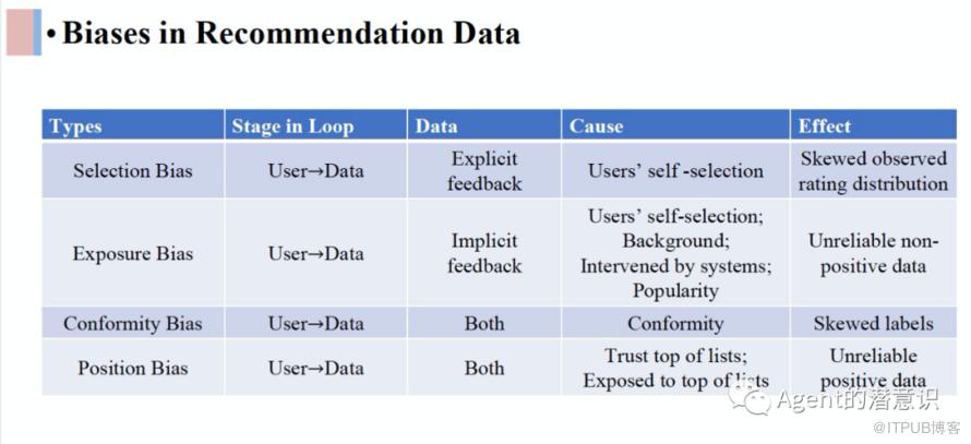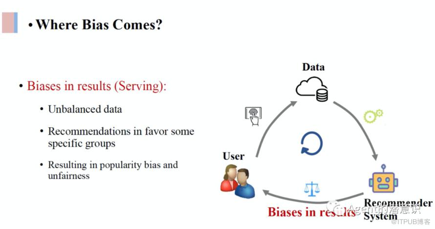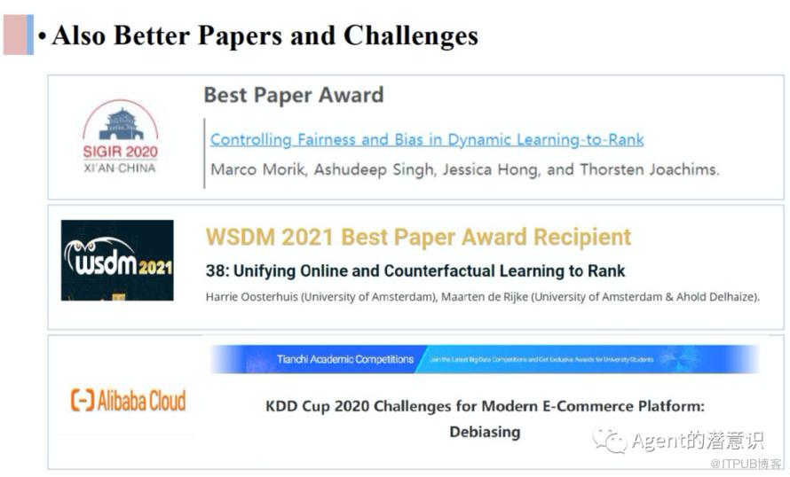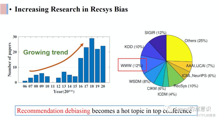 搜索推荐中,排序位置不一样,得到的曝光不一样,点击、转化的行为受位置影响,与该产品真实的畅销性之间存在偏差。例如一个产品A和产品B,A本来比较好卖,但曝光不足,导致点击转化都很低;而B一直得到曝光,点击的人多,在有限信息量的情况(用户根本没看到过A产品)下,B的销量也多。因而算法排序带来的位置偏差导致了劣币驱逐良币。同时也导致真正有实力的产品冷启动很难打开局面。 为了解决这个问题,最近研究者们也一直在探索好方法。有一篇文章将这些方法做了一个总结。我觉得很有帮助,分享给大家。 尽管近年来有关推荐系统(RS)的研究论文迅速增长,但大多数论文专注于创新机器学习模型以更好地适应用户行为数据。但是,用户行为数据是观察性的,是自然观察得到的数据,而不是按实验方法部署模型后再得到的结果,这使得数据中广泛存在各种偏差,包括但不限于选择偏差,位置偏差,曝光偏差和人气偏差。在不考虑固有偏差的情况下盲目拟合数据会导致许多严重问题,例如离线评估与在线指标之间的差异,损害用户满意度和对推荐服务的信任度等。将大量的研究模型转化为实际的改进方法,迫切需要探索各种偏见和影响,必要时执行去偏处理。在审查考虑推荐系统中的偏差估计的论文时,我们发现令我们惊讶的是相当分散,缺乏系统的组织。术语“偏差”在文献中被广泛使用,但是其定义通常是论文之间含糊不清甚至不一致。这激励我们提供有关RS偏见的现有工作的系统调查。在本文中,我们首先总结了推荐中的七种偏差及其定义和特征。然后,我们提供分类法来定位和组织有关建议去偏的现有工作。最后,我们确定了一些未解决的挑战,设想一些未来的方向,希望能激发更多关于这一重要但研究较少的话题的研究工作。后面就放PPT的内容给大家看下吧。他总结的比我要全面,我就不赘述了。对这个debias小方向感兴趣的可以自行下载。部署一下debias的算法,还是很好拿到业务结果的。