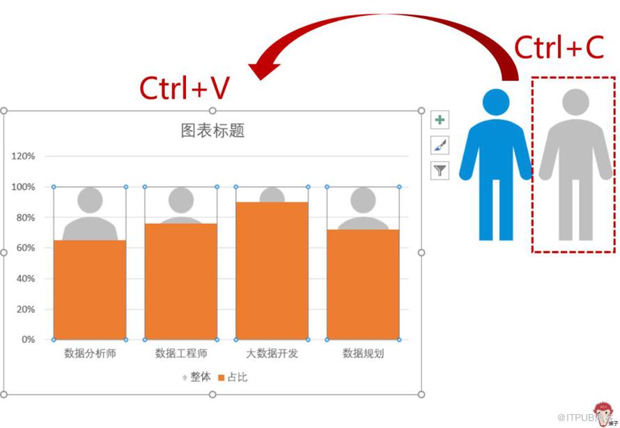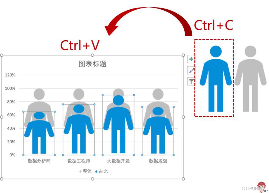 Ctrl+C复制灰色图标素材,然后Ctrl+V粘贴到蓝色柱形图,如下: