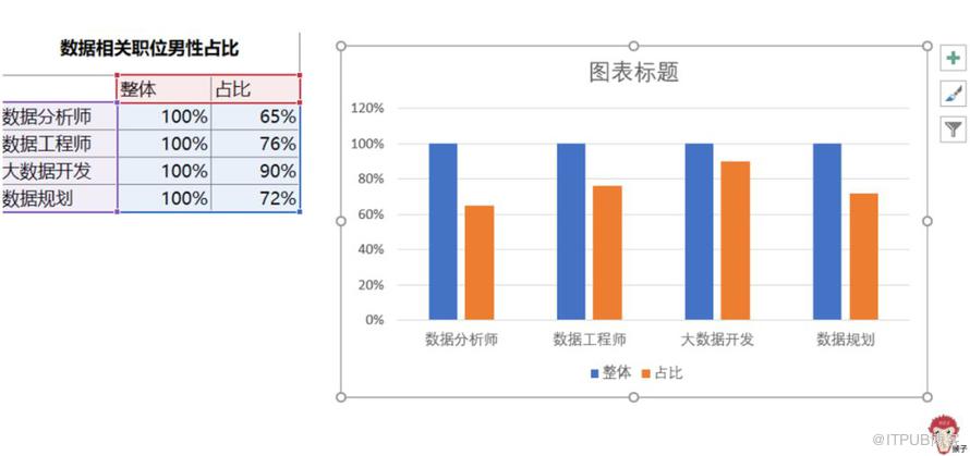 单击任一柱形图,然后Ctrl+V粘贴。得到下图: