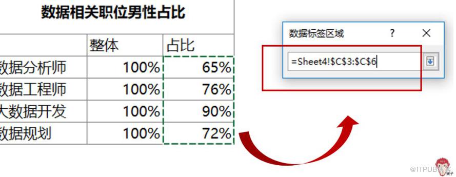这时会弹出一个excel对话框。在弹出的对话框中,选择占比的数据即可。