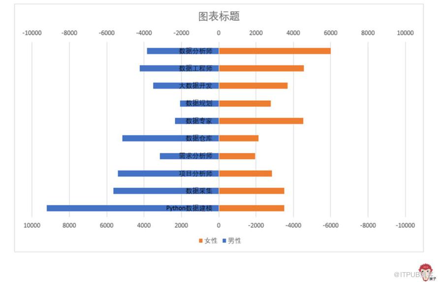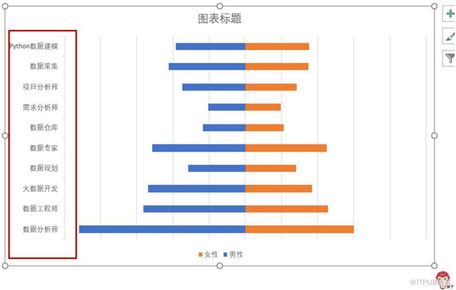 纵坐标轴的顺序倒过来了,设置为【逆序类别】倒过来即可。然后添加数据标签,删除网格线等。最终效果如下图,是不是像个翩翩起舞的蝴蝶?