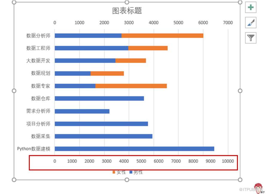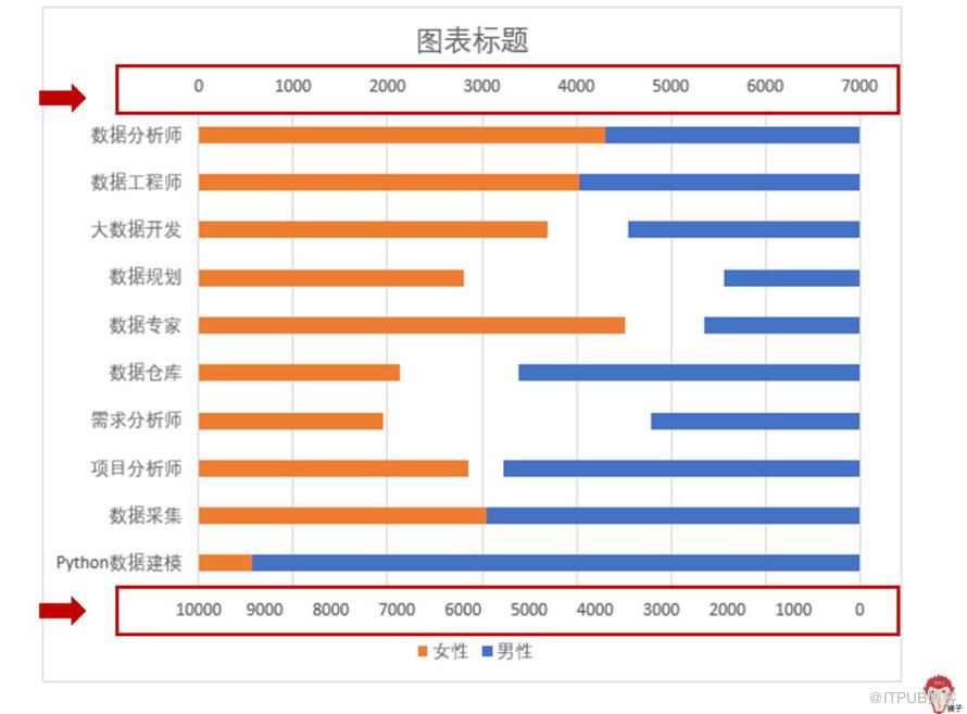 注意看坐标轴的变化。上面的横坐标轴是控制女性数据的;下面的横坐标轴是控制男性数据的。