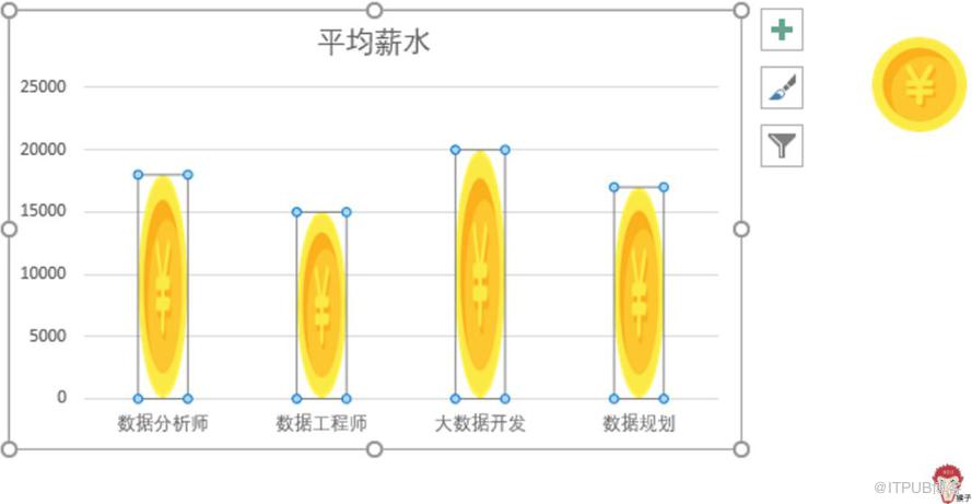 图表表达的是不同职位的平均薪水差异,所以,很自然地就想到用金币来表示薪水。于是我找了一个金币的图标,作为素材备用。