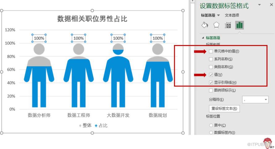 选中数据标签,在【设置数据标签格式】窗格,把【值】前的勾勾去掉,勾选【单元格的值】