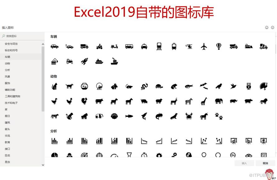 其实Excel中自带的图标就足够多了。Excel 2019版本在【插入】选项卡下会有【图标】这个功能。这里面可是宝藏哦。你可以慢慢挖掘。