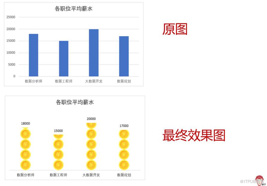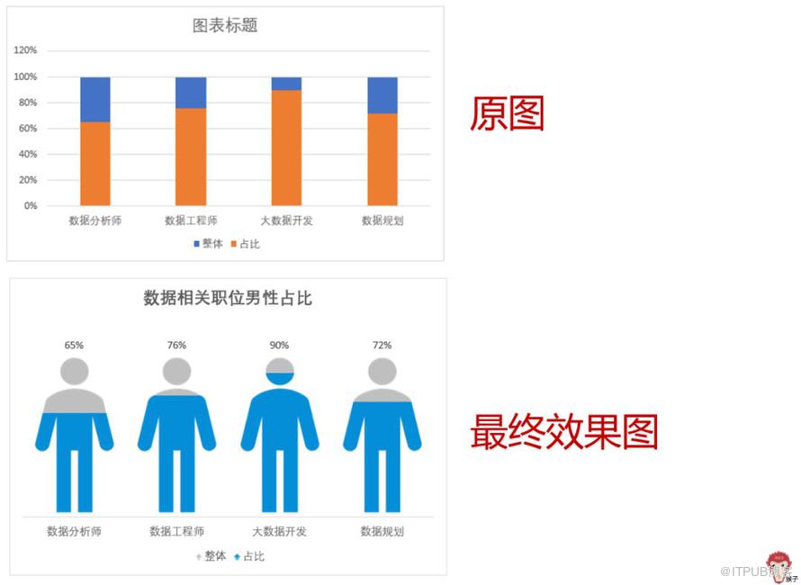 通过上面案例一的预热,想必大家都跃跃欲试。所以,像下面这样的创意图表,相信聪明的你应该都能信手粘来了吧。