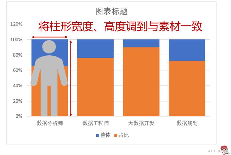 调整柱形图的宽度与高度,使得柱形图的宽度、高度与素材的一致。(可以把素材放在柱形图上面,对照着来微调)为什么要这样调整呢?因为后面要把素材粘贴进柱形图里,为了使素材不变形,这步工作可不能偷懒哦。