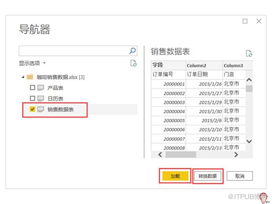 点击“连接”后,页面会弹出“导航器”对话框。“导航器”左边显示表格的名称,右边显示表格的内容,选择表格后,点击“加载“就可以导入数据。
