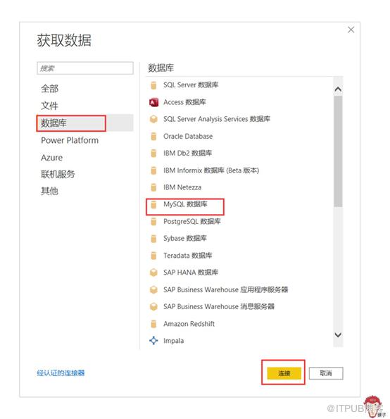 点击获取数据-->更多-->数据库-->MySQL数据库