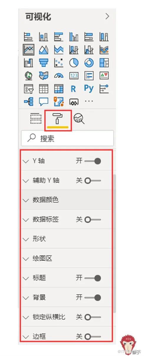 在可视化下面点击“格式”,可调整图形格式,颜色,大小,标题等。