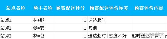 2、骑手姓名重复默认为同一个骑手;同一个骑手可能在不同站点出现差评