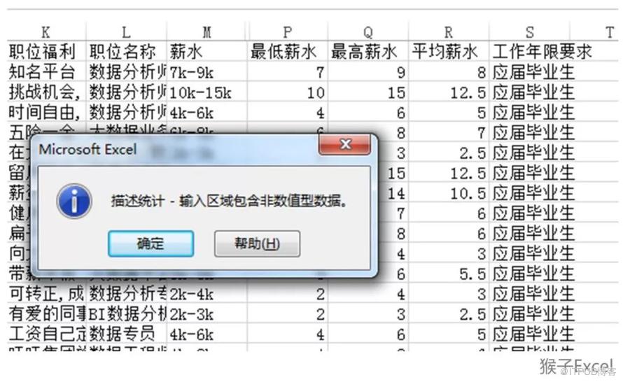 再比如,直接用对文本格式的列做“描述统计分析”,就会报下面的错误