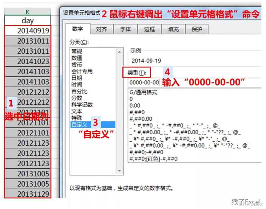 下图步骤4的地方手动输入编码“0000-00-00”。其中0在日期格式中代表占位符