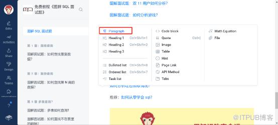 在代码处左上角点击向上的箭头,并选择书内容使用的编程语言。本案例里因为我写的书用的是SQL,所有将代码修改为SQL显示。