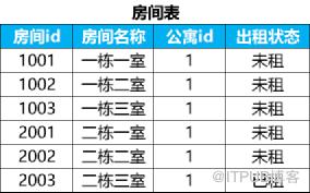 房间表:包含房间id,房间名称,公寓id,出租的状态:已租、未租