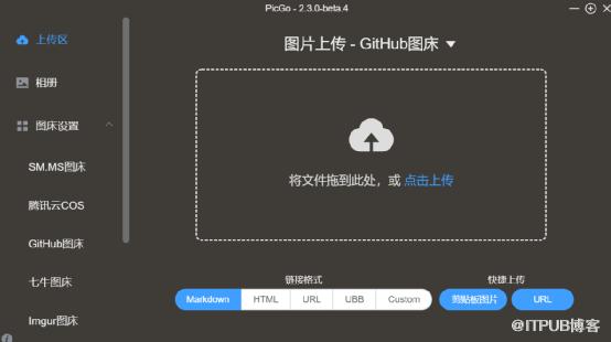 在上传区选择 GitHub图床,将需要上传的图片拖拽到上传区,图片就会自动上传到 GitHub中相应的文件夹下。