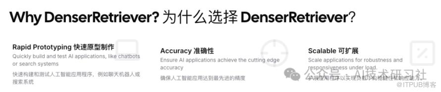 驱动端到端应用:提供了如何使用 Denser Retriever 来驱动聊天机器人和语义搜索等端到端应用的示范。
