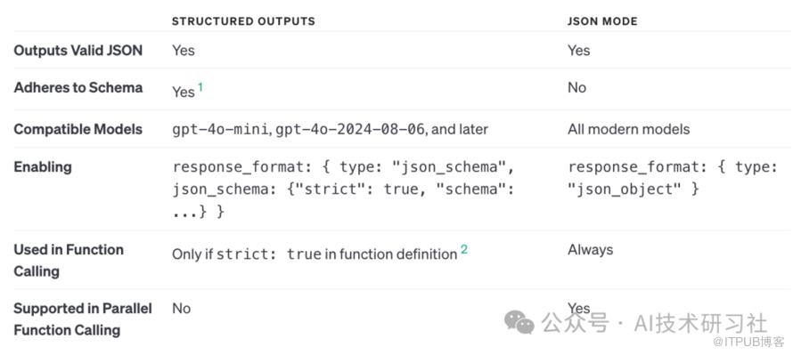 结构化输出是JSON模式的演变。虽然两者都确保生成有效的 JSON,但只有结构化输出确保架构合规性。Chat Completions API、Assistants API、Fine-tuning API 和 Batch API 都支持结构化输出和 JSON 模式。