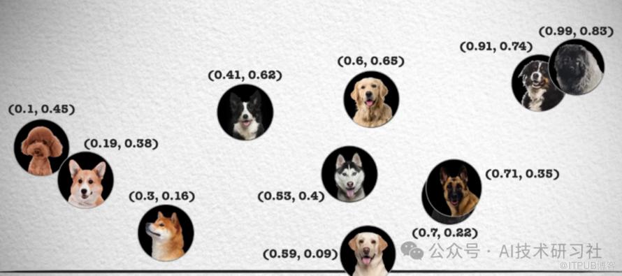 如果我们以坐标原点为起点,每个事物的坐标点为终点,我们得到的就是带有大小和方向的向量。通过计算两个向量之间的距离,我们可以找到相关的事物或信息。在这种特征空间中,特征相似的事物在空间中会彼此相邻,而差异明显的事物则距离更远。