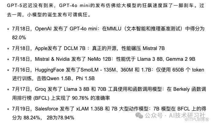 OpenAI、Apple、Mistral等各大公司“百花齐放”,竞相推出自家性能优越的轻量化小模型。