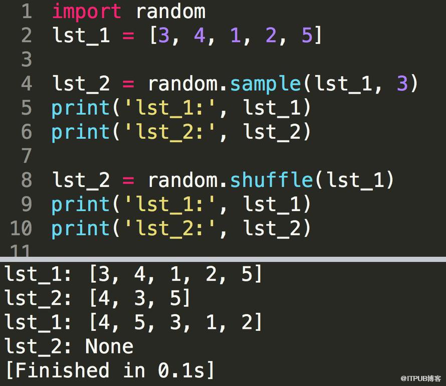类似的情况还有 random 模块的 shuffle 方法和 sample 方法。你来尝试分析下两者的不同?