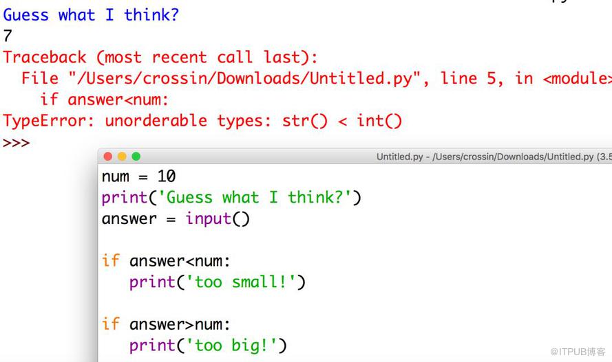 py3 的 input,不管你输入什么内容,都会被当做字符串来处理。而字符串是不能跟数字之间比大小的。所以需要手动转换一下: