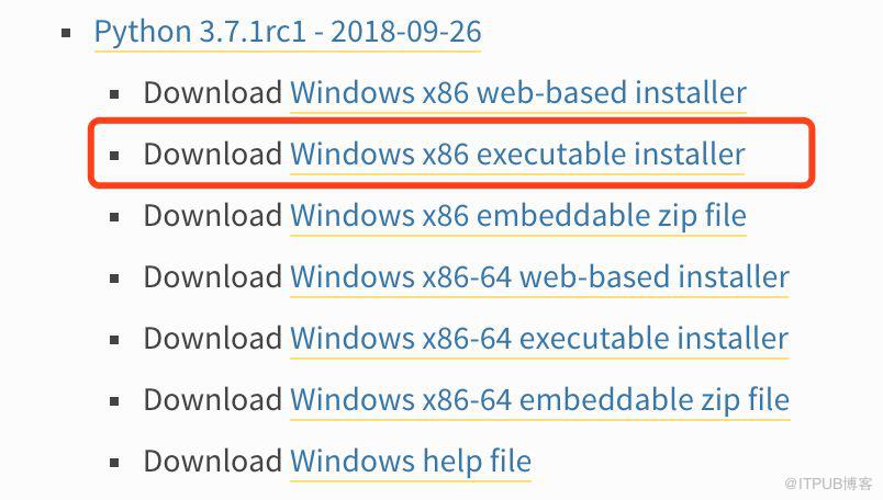 如果官网上的最新版本按钮没有替你自动下载,可从列表中选择 executable installer。如果你确信自己的系统是 64 位的,可以选 x86-64,否则选 x86 也没有问题。