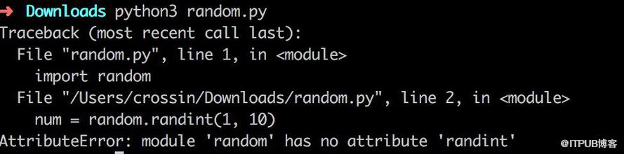 这个情况如果发生了,你可能很难找到问题所在,通过网上搜索也不行。原因是你的代码用了系统模块一样的名字:random。类似的,如果你给自己的代码取名 math.py、list.py、str.py 等,或者变量名用 sum、time、str、list 等,都有可能因命名冲突带来意想不到的 bug。所以,远离系统保留字。好的编辑器会给你高亮提示出来。如果你自己拿不准,取名时尽量用合成词,比如 my_random 之类。